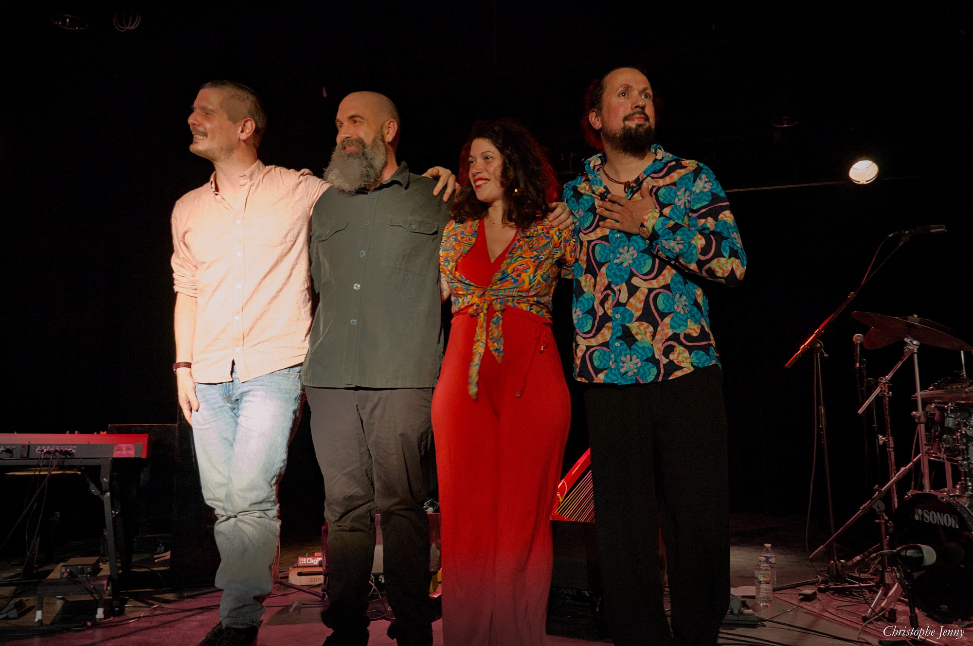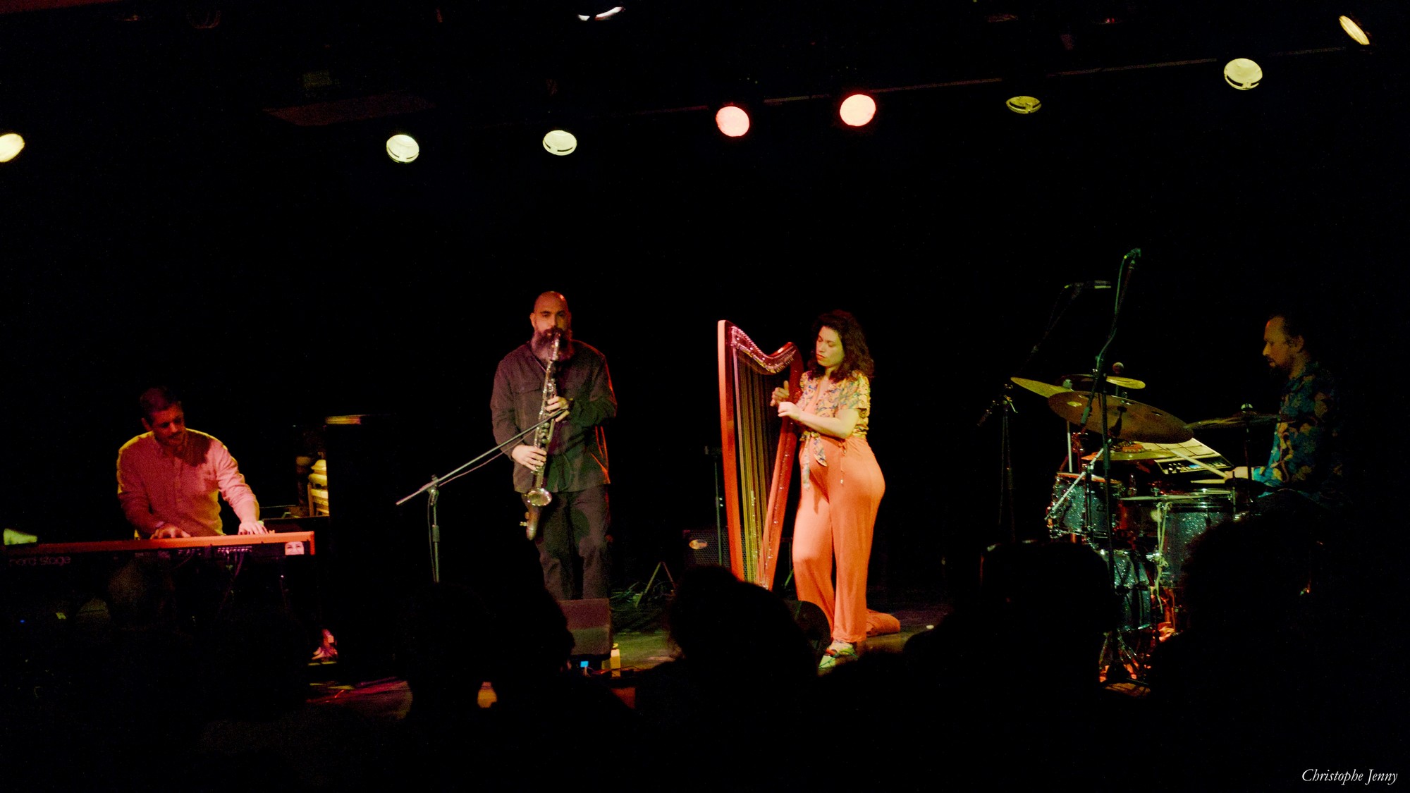 Le 8 mars dernier, c’est Chocho Cannelle qui se produisait sur la scène de la salle Jean-Claude Carrière à Marsillargues, dans le cadre des Jam + Jazz de l’Heure du Loup. Quartet de world-jazz à l’instrumentation singulière, Chocho Cannelle se nourrit des musiques du monde. Il s’inscrit dans la lignée des groupes de jazz actuels qui ont aboli les frontières stylistiques. Dans un subtil et virtuose équilibre, leur musique mêle de multiples couleurs : celles des influences latines sud-américaines, créoles, africaines, mais aussi celles du jazz, de la musique classique et d’autres plus impressionnistes, plus calmes, plus douces. Quelques photos (pas toujours très nettes malheureusement).