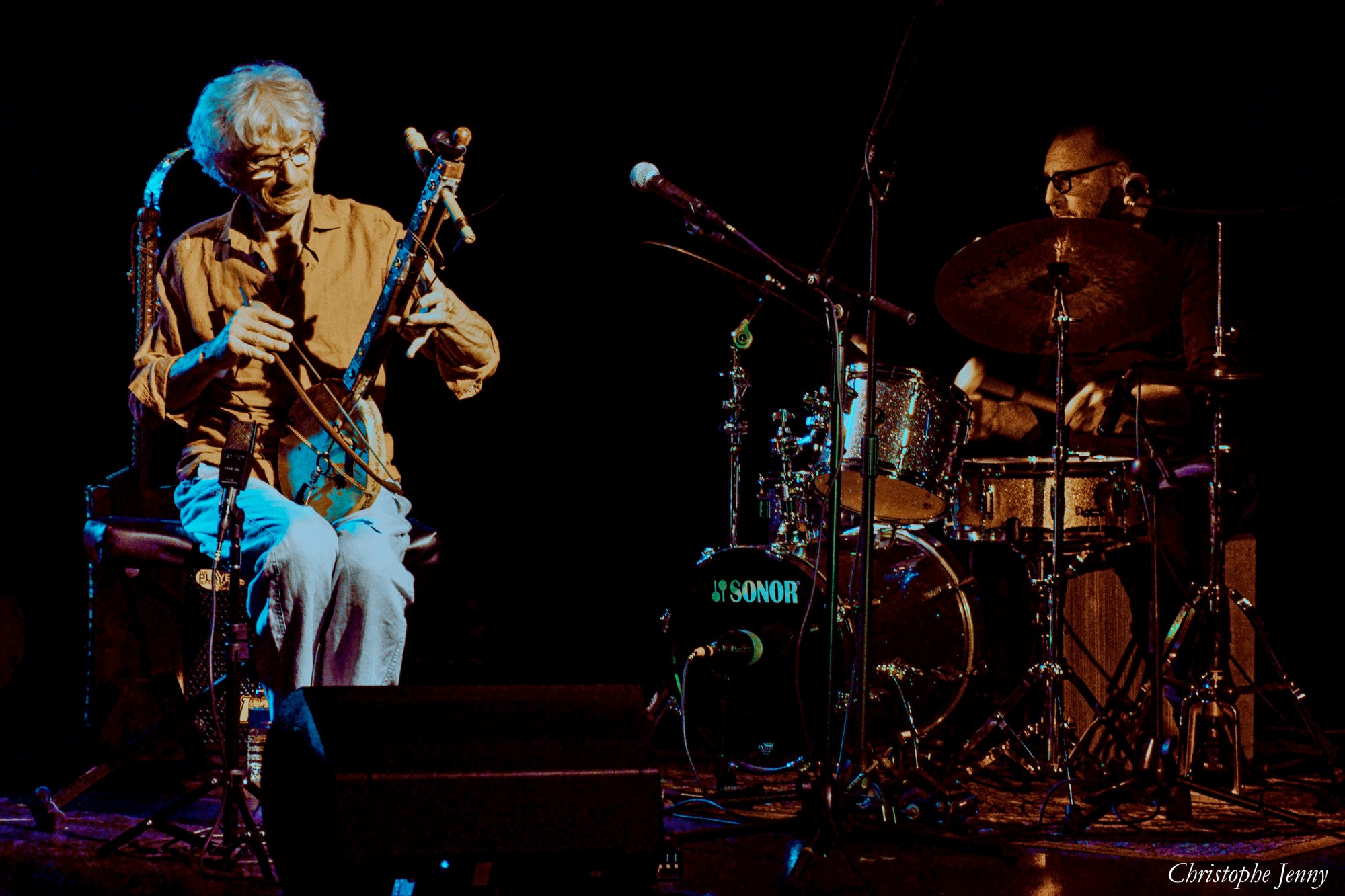 Hier soir, l’Heure du Loup à Marsillargues accueillait Hadouk et le répertoire de leur dernier album, le Concile des Oiseaux (2024). Retrouvailles émouvantes sur scène de Didier Malherbe et Loy Ehrlich. En fin de set, ils étaient rejoints par de vieux complices, Jean-Luc di Fraya à la batterie et au chant, et Eric Löhrer à la guitare, par ailleurs hôte de la soirée. Concert intimiste aux confins du monde.