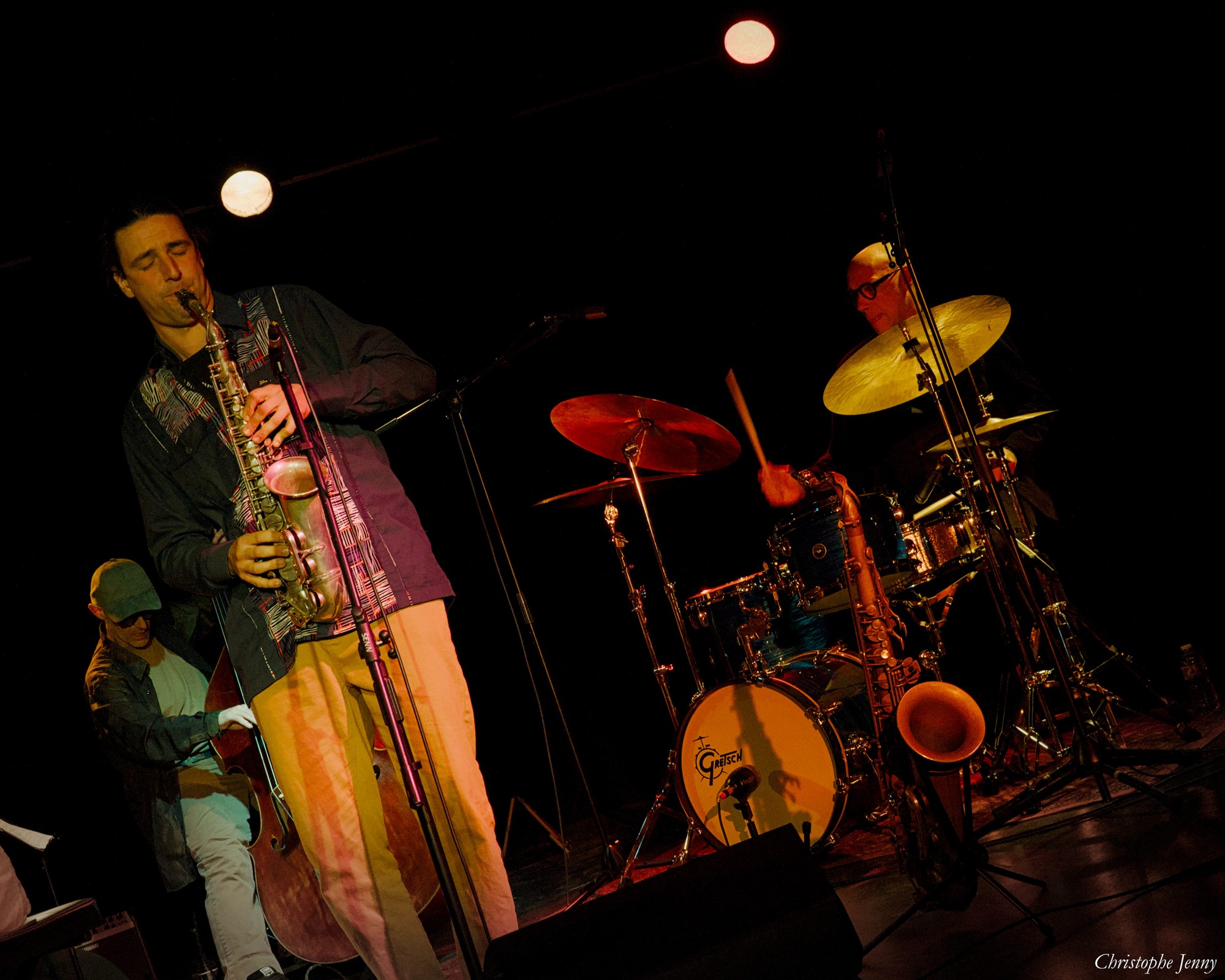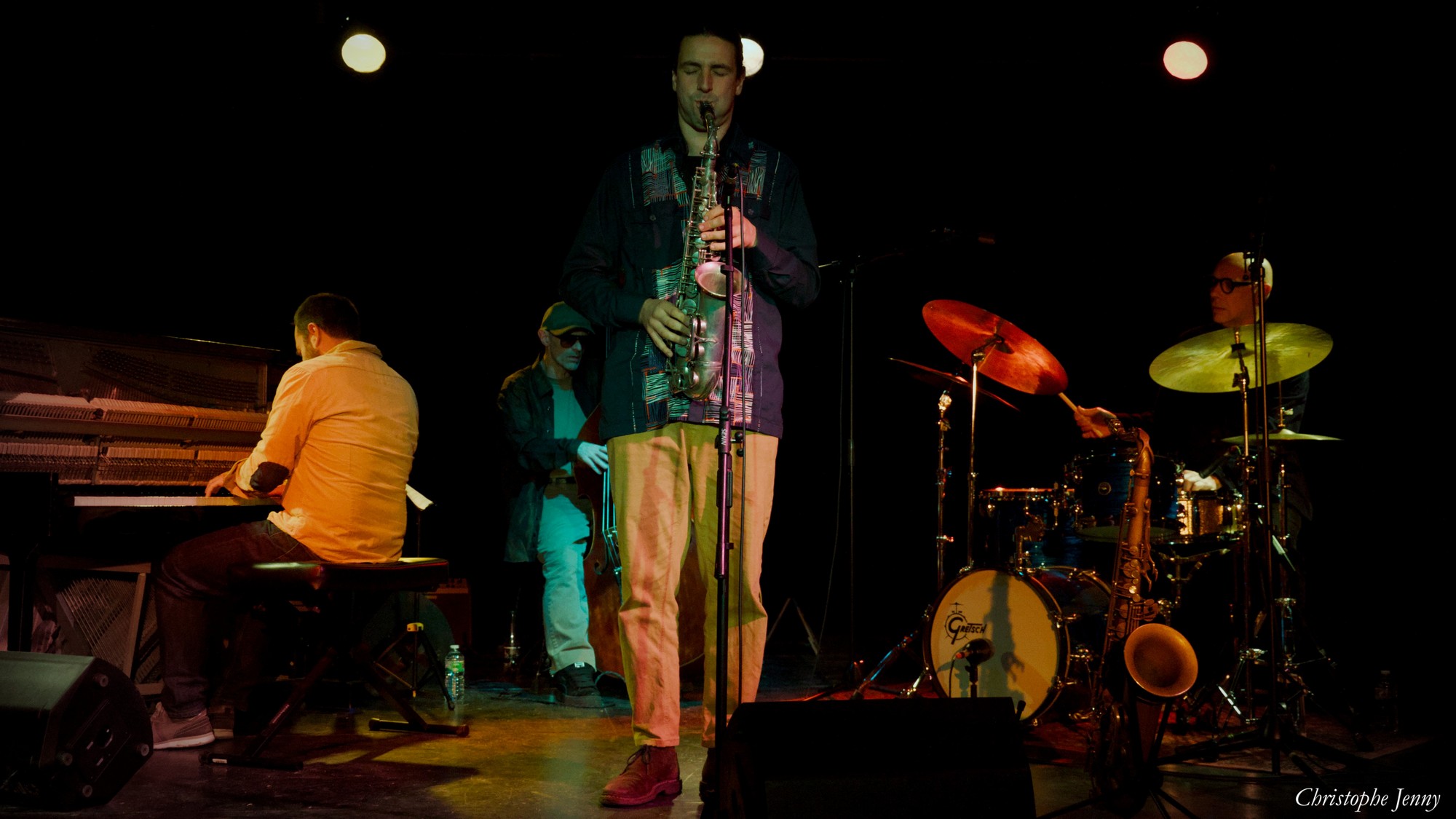 Pour la vingt-cinquième édition des Jazz+Jam de l’Heure du Loup, ce sont les ardéchois de Sun Ship 4tet qui se produisaient hier soir à la salle Jean-Claude Carrière de Marsillargues. Étienne Déconfin au piano, Julien Chignier au saxophone, François Gallix à la contrebasse et Stéphane Foucher à la batterie nous ont immergés dans leur univers entre hard bop et soul jazz. Ils tirent leurs influences de Coltrane et leurs compositions reflètent l’influence des standards, plongés dans un bain brûlant de jouvence et de virtuosité parkérienne. Une grande heure de fusion complice, devant une salle encore une fois comble. Quelques clichés.